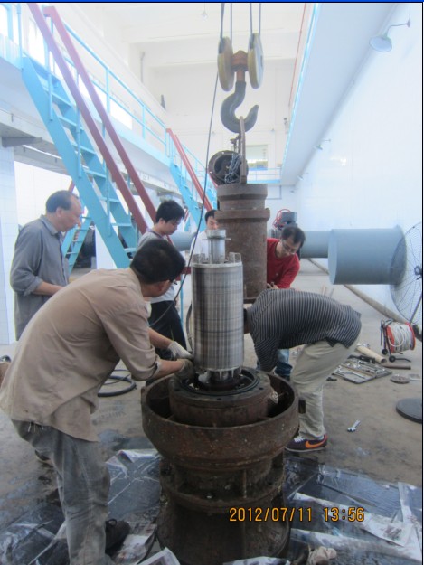 在中秋、國慶“兩節(jié)”來臨之際,為了讓荊城人民度過一個歡樂祥和的假日,市供水總公司第三水廠組織人員對全廠供水設(shè)施進行了全面檢查和維修,確保了各種設(shè)備的安全運行,為兩節(jié)期間供水生產(chǎn)提供了可靠保障。(圖為水廠技術(shù)人員正在搶修取水提升3#機組)。