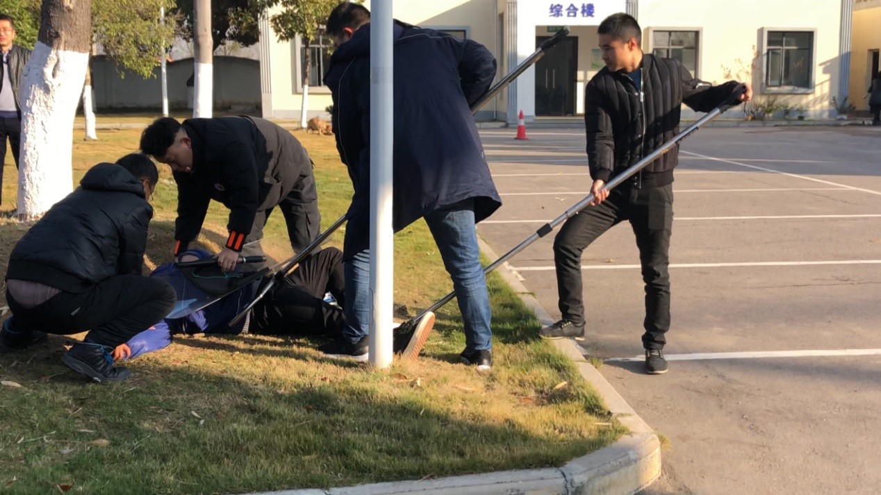 演練中,兩名暴恐分子打著送快遞的幌子相互配合分散門衛(wèi)注意力,然后手持兇器強行闖入加壓站生產(chǎn)區(qū)企圖施暴,門衛(wèi)發(fā)現(xiàn)并阻止無效后吹響了警示哨。收到警示信號,反恐組副組長第一時間沖出辦公室,攔截欲前往中心控制室的暴恐分子,并讓辦公室工作人員撥打110報警,在與兩名恐暴分子交涉無果后,反恐組組長警哨長鳴并立即啟動供水總公司加壓站反恐防爆應(yīng)急預(yù)案,發(fā)布緊急命令,站內(nèi)反恐暴人員拿起武器從維修班一涌而出將兩名恐暴分子團團圍住,以防其進入站內(nèi)制水車間及清水池,造成人員傷亡,影響全城供水。經(jīng)過配合圍捕等一系列行動后,最終將暴恐分子制服。