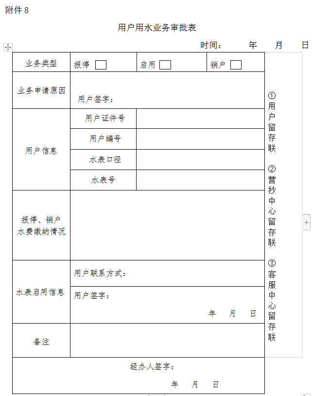 8.《用戶用水業(yè)務(wù)審批表》