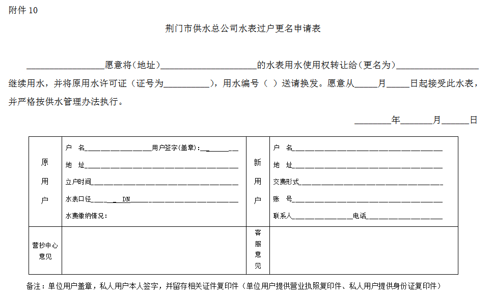 10.《荊門市供水總公司水表過戶更名申請表》