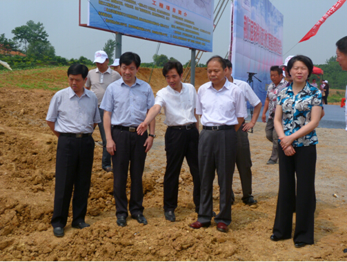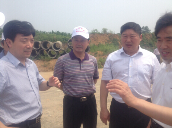 ![]() 市委書記萬勇(右二)、市長肖菊華(右一)、副市長鄭中華(左一)等領(lǐng)導(dǎo)觀摩施工現(xiàn)場