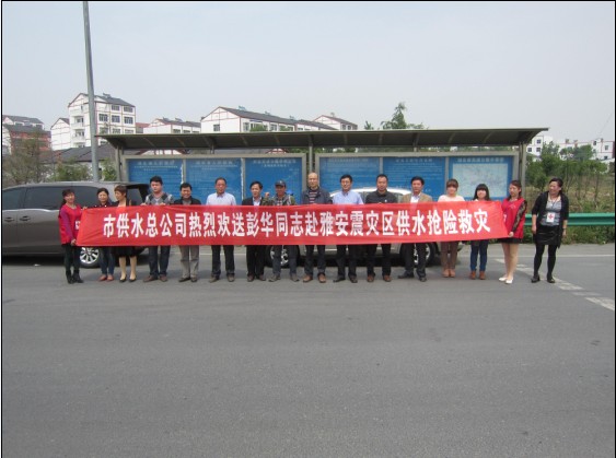 425日,荊門市供水總公司黨委書記陳永根,副總經(jīng)理王宜龍等一行到荊門南高速路口歡送加壓站職工彭華隨湖北紅十字會12人供水救援隊赴雅安震災(zāi)區(qū)搶險救災(zāi)。出發(fā)前,該司領(lǐng)導(dǎo)囑咐彭華在災(zāi)區(qū)注意自身安全;全力以赴的撲入到搶險救災(zāi)工作中去;把全體供水職工“心系雅安,你我同在”的愛心帶去。彭華表示不辜負(fù)全體員工的囑托,把愛心帶到災(zāi)區(qū),并保證圓滿完成搶險救災(zāi)任務(wù)。