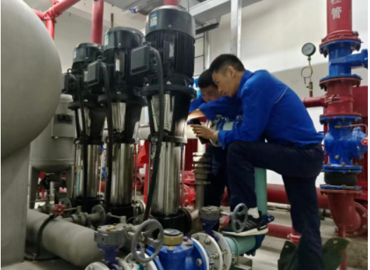 經(jīng)過分析,大家一致支持采用方案二。韓勇和同事們聯(lián)系昱奎化工負(fù)責(zé)人,經(jīng)變壓器供電,解決了電的問題。再綜合水表計(jì)量、地勢(shì)高差等綜合因素分析,最終選擇了一款水泵。一切準(zhǔn)備就緒,韓勇和戰(zhàn)友們爭分奪秒,接電、調(diào)適、安裝,經(jīng)過48小時(shí)的緊張作業(yè),終于建成泵站,解決了水壓問題。