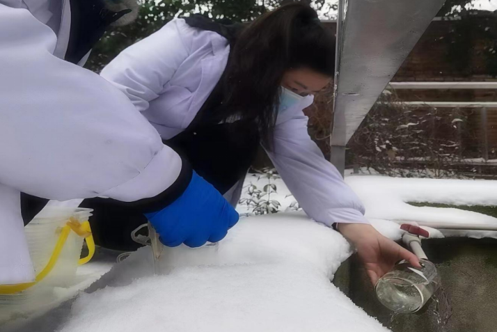 化驗(yàn)室加強(qiáng)對(duì)反應(yīng)池、沉淀池的跟班分段檢測(cè),及時(shí)了解低溫期凈水絮凝效果,指導(dǎo)廠站合理調(diào)整制水工藝。加大特殊時(shí)間段的水質(zhì)檢測(cè)頻次,確保從源頭到龍頭水質(zhì)達(dá)標(biāo)。