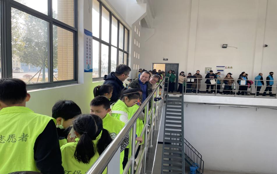 大家首先在四水廠中控室了解廠站基本情況和制水工藝流程,然后實地觀摩泵房、沉淀池等構筑物。志愿者群體多數是首次進入水廠,在參觀過程中熱情高漲,孩子們對生產設備、各類“池子”和水質檢測室都充滿好奇,爭先恐后地提問,現場氣氛非?;钴S。