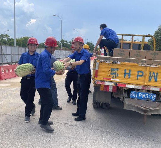 圖為集團黨委書記、董事長陳永根(左3)為基層送清涼