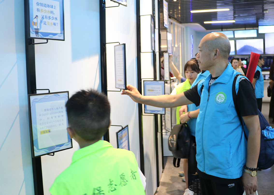 圖為環(huán)保志愿者參觀水務(wù)集團(tuán)智慧展廳