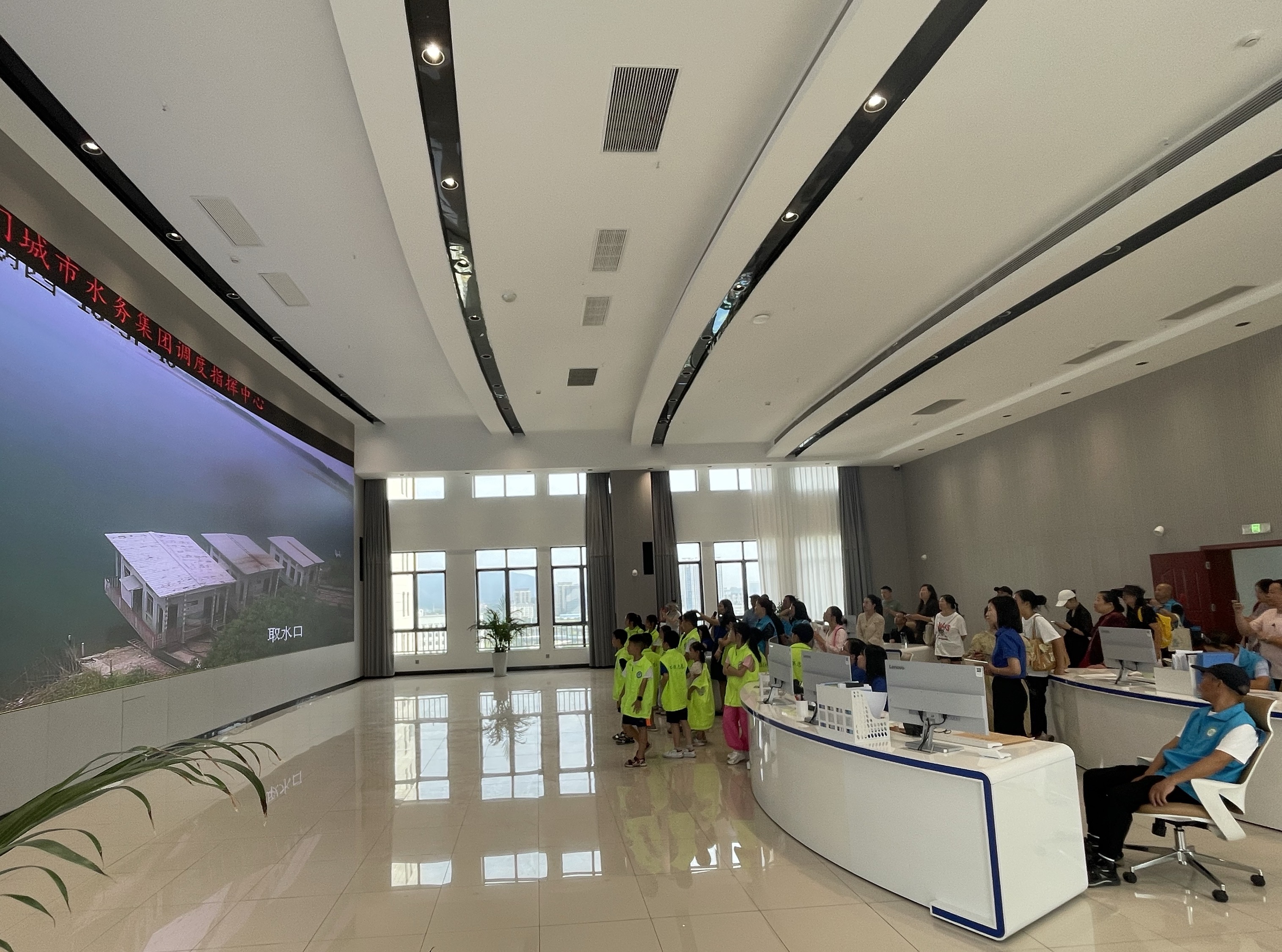 圖為環(huán)保志愿者參觀水務(wù)集團(tuán)調(diào)度指揮中心