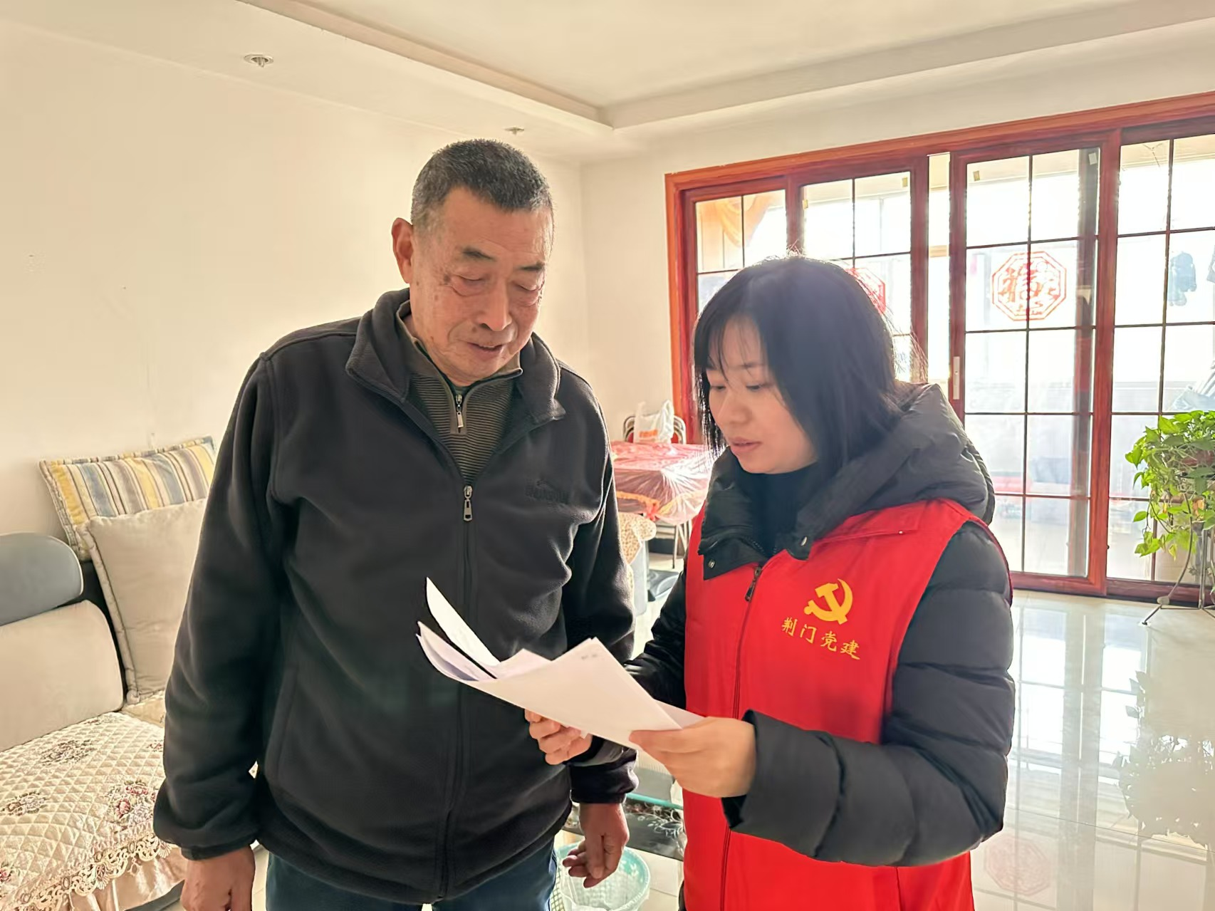 圖為工作人員入戶慰問(wèn)老人