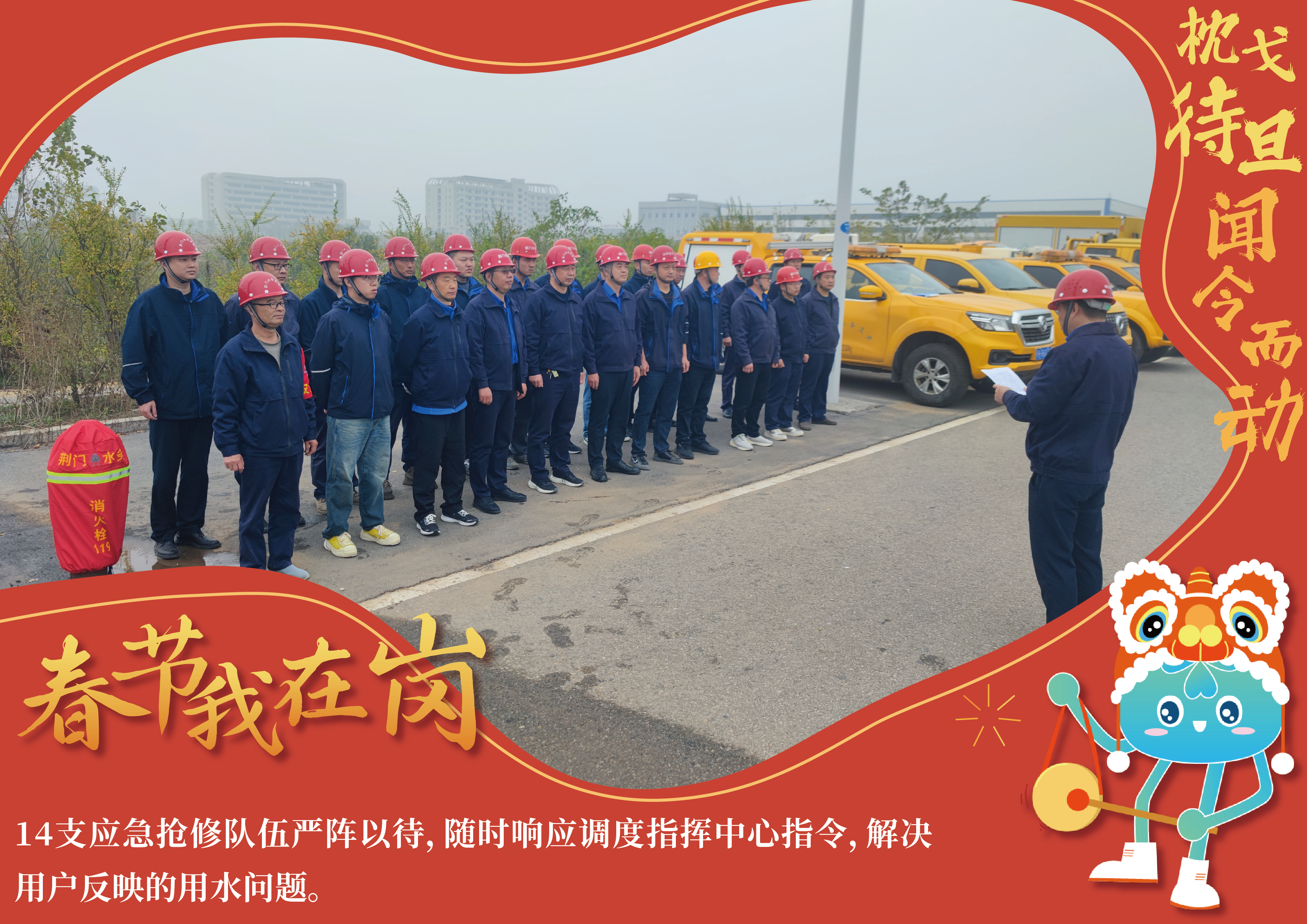 春節(jié)期間,在崗值守的水務鐵軍們將堅持用戶至上服務宗旨,默默守候在城市的各個角落,陪伴廣大市民用戶歡度新春佳節(jié)。