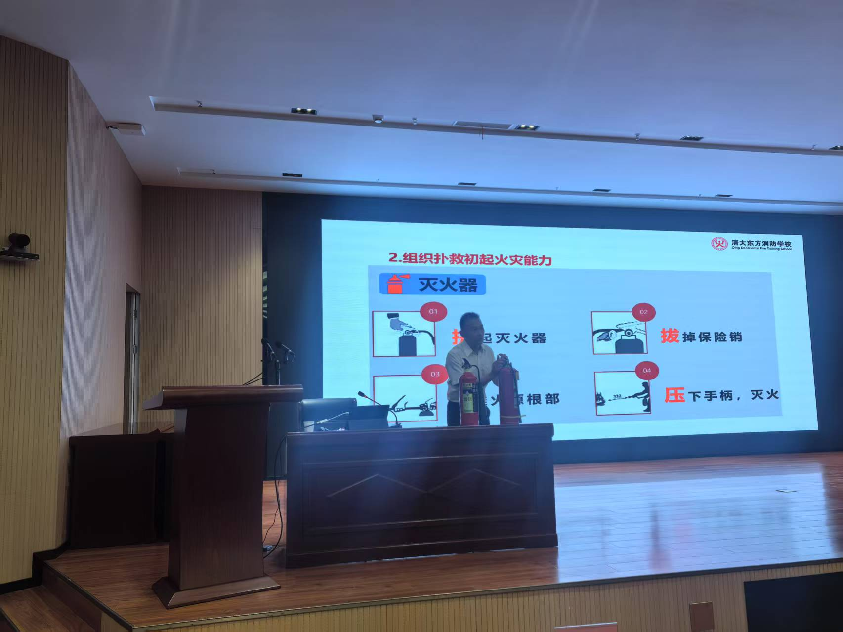 授課過程中穿插播放了一系列觸目驚心的火災案例視頻,真實直觀展現(xiàn)了“小火亡人”的突發(fā)性和“煙囪效應”的破壞性。為強化培訓效果,現(xiàn)場演示了滅火器、消防水帶等消防設施的正確使用方法,切實提升了參訓員工的"檢查消除隱患、撲救初起火災、組織人員疏散、消防宣傳教育"四個能力。