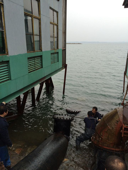 圖為:水廠員工拉升取水泵車(chē),確保供水安全。