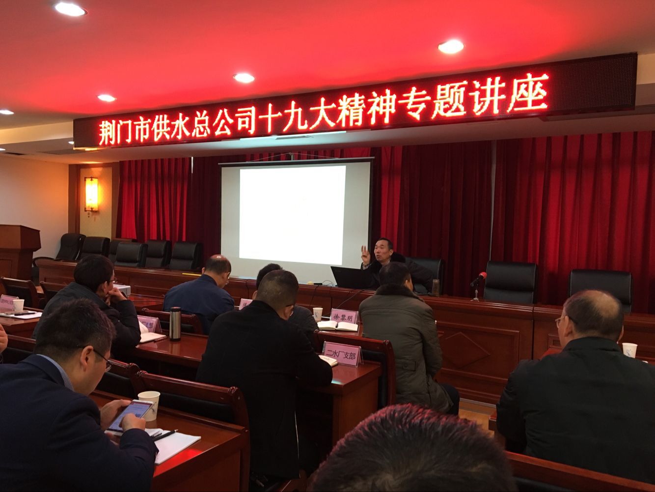此次講座,使廣大黨員更深刻地理解和把握了十九大報告的精髓和要義。大家紛紛表示,要堅持讀原著、學原文、悟原理,在學懂弄通做實上下功夫,深刻理解和把握習近平新時代中國特色社會主義思想的指導意義、歷史地位、豐富內(nèi)涵、精神實質(zhì)和實踐要求,用馬克思主義中國化最新成果武裝頭腦、指導實踐、推動供水工作。