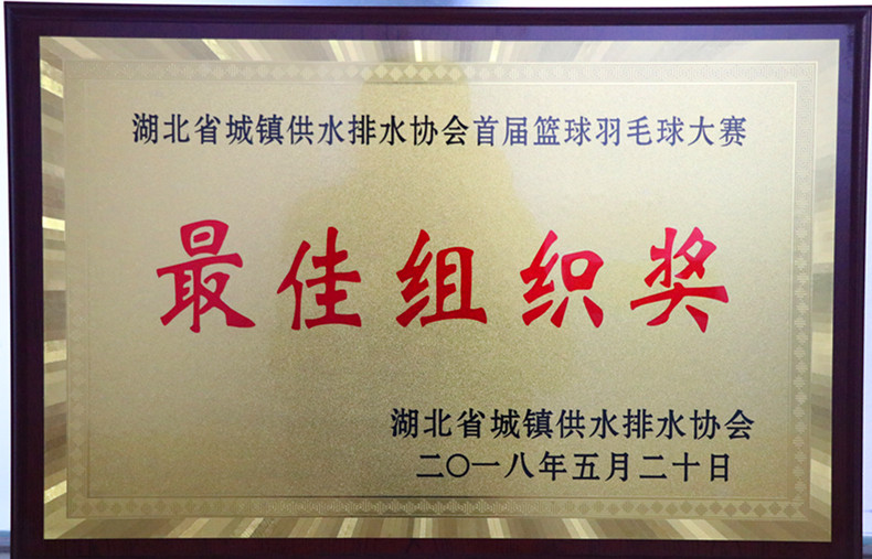 省城鎮(zhèn)供水排水協(xié)會(huì)首屆籃球賽羽毛球賽于5月16日至19日成功舉辦。鑒于市供水總公司的精心籌備和優(yōu)秀組織,省水協(xié)授予我公司最佳組織獎(jiǎng)并贈(zèng)送錦旗以示感謝。錦旗上書寫:“鼎力搭建展示行業(yè)風(fēng)采平臺(tái)傾情澆灌荊楚水務(wù)友誼之花”。