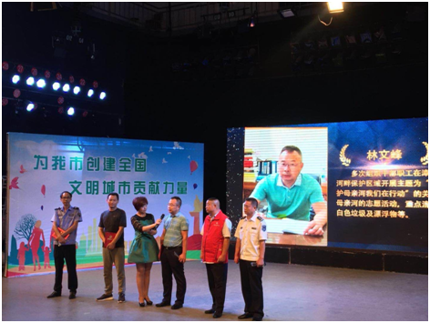 漳河是荊門(mén)人民的母親河。從事供水事業(yè)近30年以來(lái),無(wú)論酷暑嚴(yán)寒、刮風(fēng)下雨,林文峰堅(jiān)持每天巡查水源保護(hù)區(qū),帶領(lǐng)水廠員工清理取水口周邊雜物,確保水源干凈整潔和供水安全優(yōu)質(zhì)。頒獎(jiǎng)典禮上,林文峰現(xiàn)場(chǎng)講述了近二十年持之以恒的水源地環(huán)保行動(dòng),樸實(shí)無(wú)華卻震撼心靈,為廣大市民樹(shù)立了環(huán)保典范。