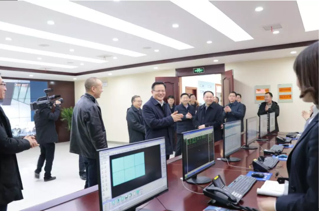 2018年剛完成升級改造的供水調(diào)度監(jiān)控中心寬敞明亮、恢弘別致。張愛國詳細查看了應急指揮系統(tǒng)運行情況,并對供水生產(chǎn)經(jīng)營情況進行了詢問。