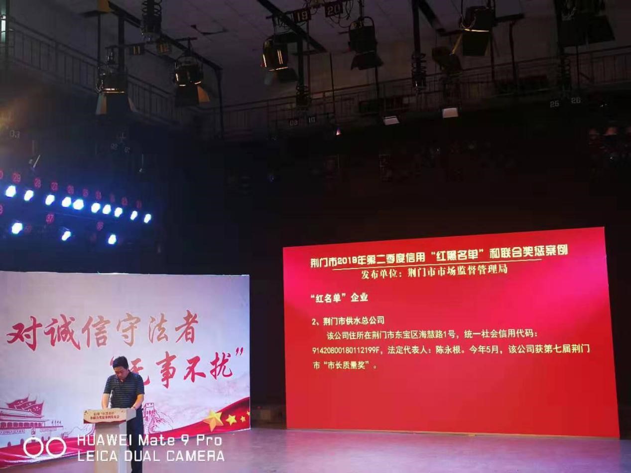 724日下午,荊門(mén)市社會(huì)信用體系建設(shè)領(lǐng)導(dǎo)小組辦公室、市發(fā)改委、人行荊門(mén)市中心支行聯(lián)合組織召開(kāi)第二季度信用“紅黑名單”和聯(lián)合獎(jiǎng)懲案例發(fā)布會(huì)。會(huì)上,市供水總公司被授予“全市市場(chǎng)監(jiān)管領(lǐng)域守信企業(yè)”榮譽(yù)稱號(hào),入選荊門(mén)市守信企業(yè)“紅名單”。